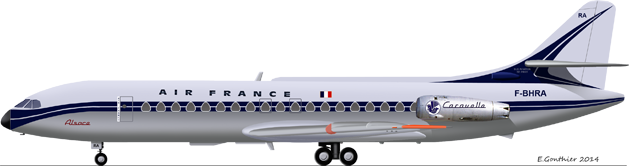 Ces paroles de chanson Française des années soixante en disent beaucoup sur le mythe que porte alors cet avion. C’est par lui que les Français, qui se remettent lentement de la guerre, redécouvrent qu’ils ont une industrie aéronautique civile. Quelle audace : deux réacteurs installés tout à l’arrière du fuselage, on a jamais vu ça ! Mis entre parenthèses l’épisode des premiers Comet anglais, qui avaient vocation au long courrier, « la Caravelle » est le premier avion de transport moyen courrier à réaction. Il sort des usines de Sud Aviation à Toulouse avant que les Américains, que l’on accusera, sans doute à tort, de plagiat, ne produisent leurs DC9. On se déplace en famille le dimanche pour aller le voir décoller depuis les terrasses d’Orly, de Genève-Cointrin (ainsi votre serviteur). A le comparer aux avions « à hélices » il donne l’impression de monter à la verticale…