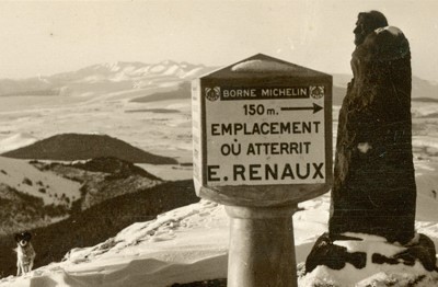 Et bien trois ans plus tard, le 7 mars 1911, l’aviateur français Eugène Renaux, parti de l’aérodrome de Buc en région parisienne, pose son appareil sur la plate‑forme du Puits de Dôme où il s’arrête en moins de dix mètres !!! |