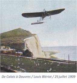 meetings et fêtes de l’air auxquels les foules se rendaient, et les élégantes venaient se pâmer devant les valeureux aviateurs. Le véritable détonateur, fondateur de la crédibilité de l’avion, fut la traversée de la Manche en trente sept minutes par Louis Blériot le 25 juillet 1909. |