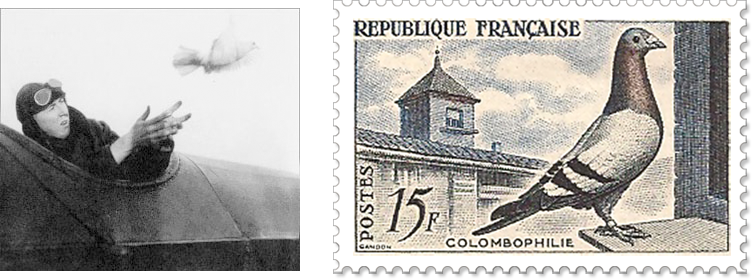Les pilotes lâchaient alors le pigeon voyageur qui était systématiquement embarqué à dessein !