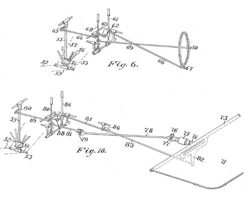 Pour les trois appareils, il est prévu un gauchissement des ailes, et des gouvernes de direction et profondeur. Pour l'un de appareils, direction et profondeurs correspondent à une gouverne unique (pièce 71 de la figure 10 ci-dessus).