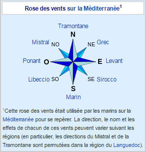 Les phénomènes venteux significatifs ont leurs noms vernaculaires, d’Europe, d’Amérique, d’Asie, d’Afrique: Vent d’Autan, Mistral, Bise, Tramontane, Foehn, Ponant, Harmattan, Libeccio, Simoun, Sirocco, Joran, Khamsin, Gharbi, Chargui, Williwaw, Chinook, Pampero, Mousson, etc.