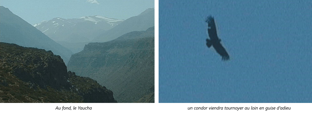Une dernière fois aussi un condor viendra tournoyer au loin en guise d’adieu. Les guanacos, eux, sont là-haut, dans les vegas, loins du monde d’aujourd’hui. |